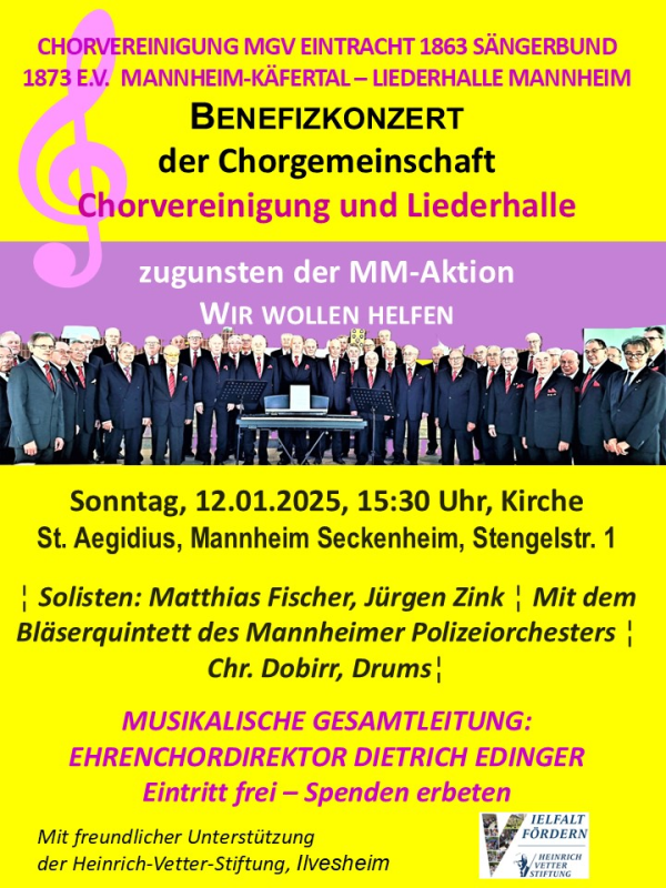 Auf Initiative ihres Dirigenten Dietrich Edinger ist die Chorvereinigung mit dem Verein MGV Liederhalle Mannheim e. V. eine Kooperation zum gemeinsamen Singen eingegangen. Proben, Aufführungen und die meisten Vereinsaktivitäten finden gemeinsam statt. Mit derzeit über 60 Sängern bildet der gemeinsame Chor den zurzeit größten Männerchor in Mannheim.
